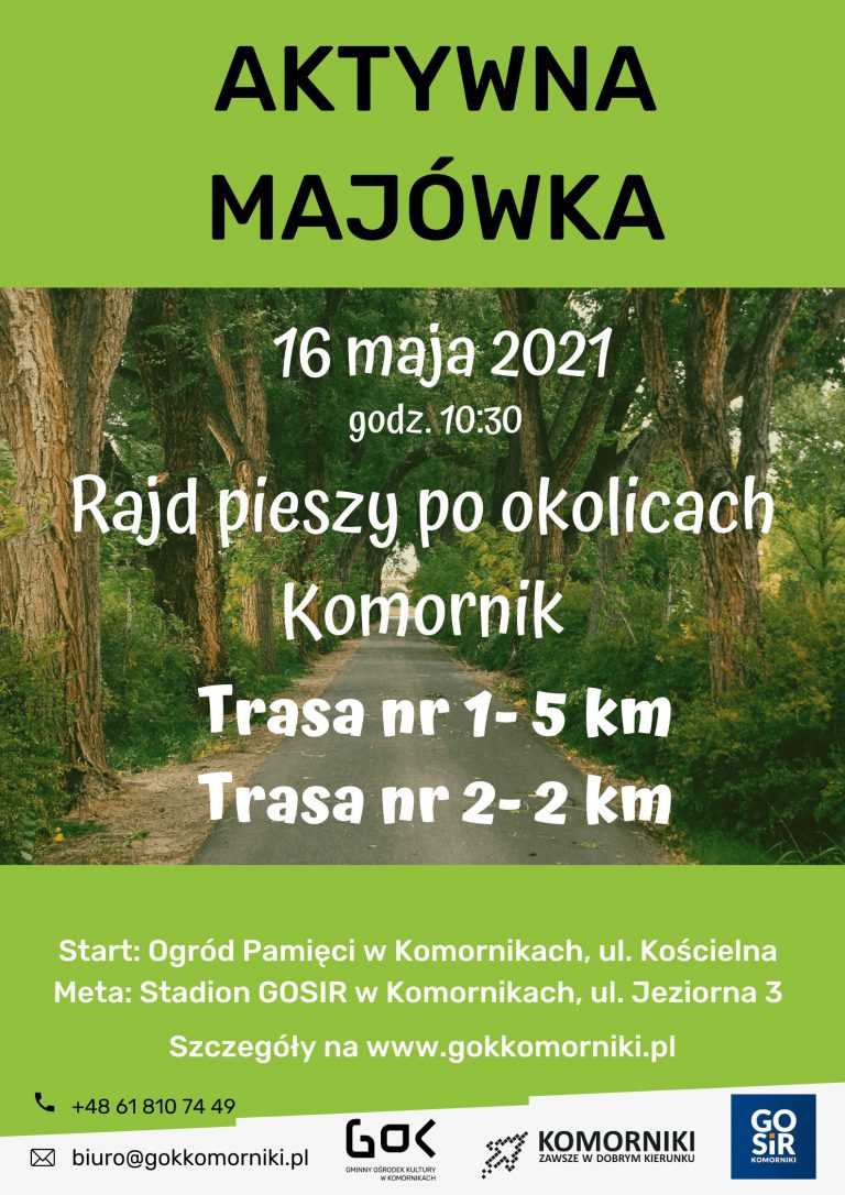 W niedzielę, 16 maja, odbędzie się rajd wspólnie organizowany w Komornikach przez Gminny Ośrodek Kultury i Gminny Ośrodek Sportu i Rekreacji. Uczestnicy będą mieli do