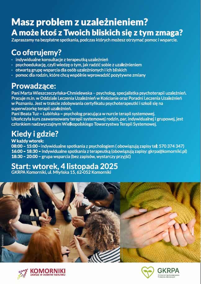 Propozycja dla osób uzależnionych i ich bliskich. Szczegóły na plakacie.