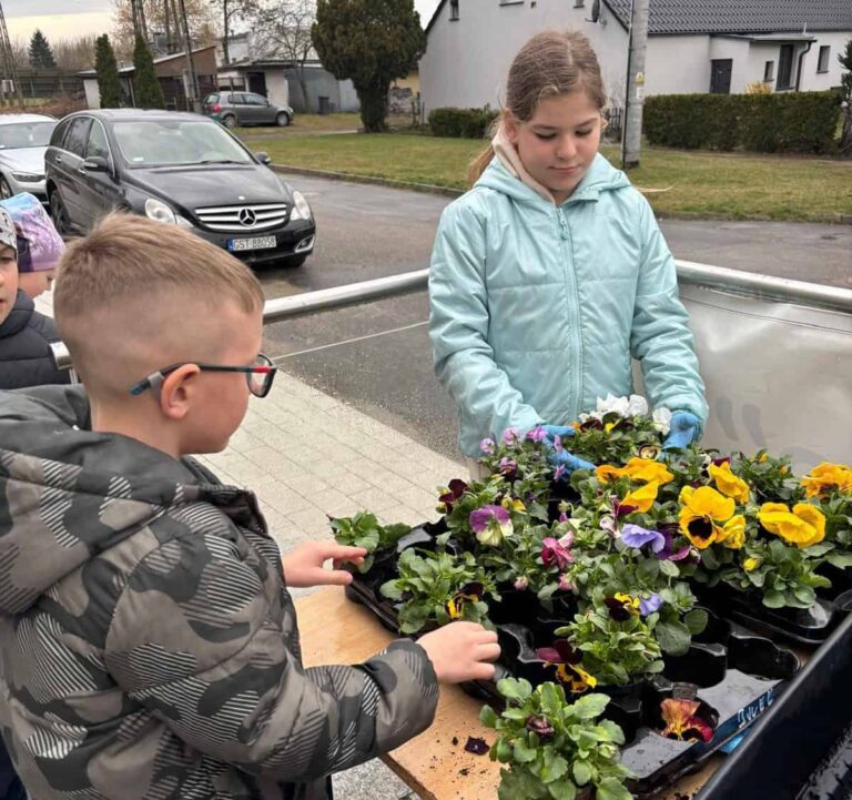 Wspólne sadzenie bratków przy świetlicy środowiskowej w Szreniawie było nie tylko okazją do kontaktu z naturą, ale także do budowania relacji i rozwijania współpracy wśród