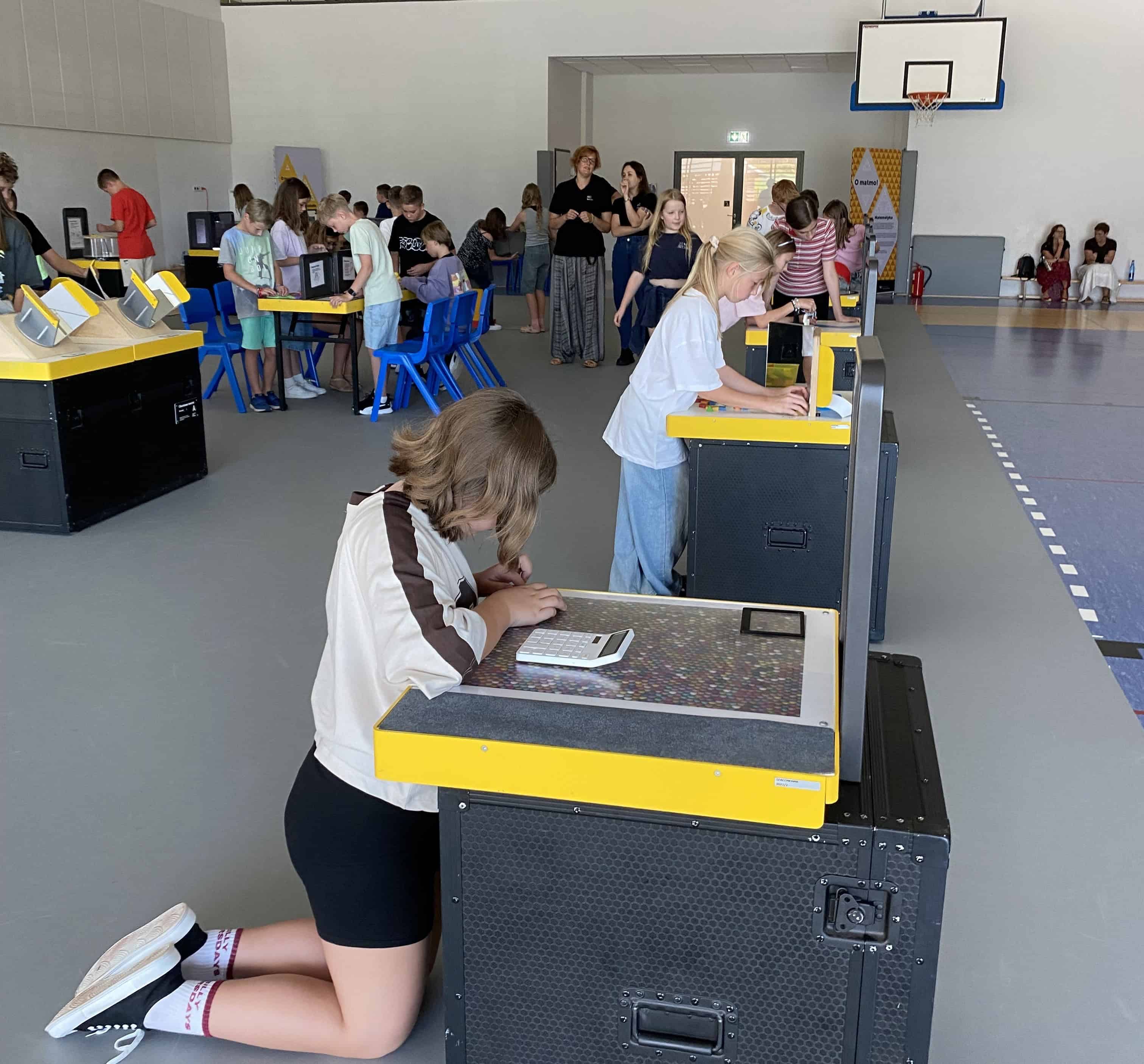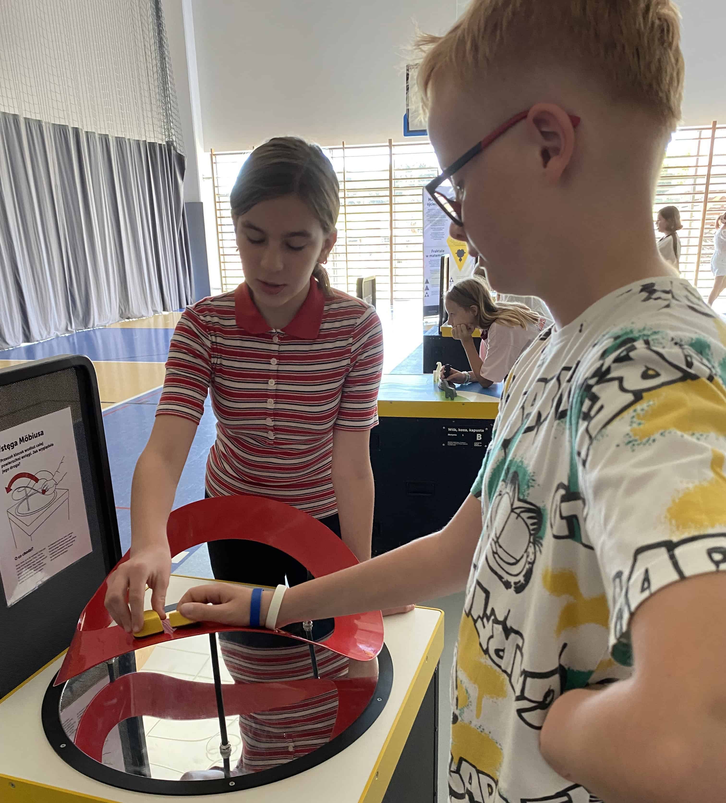 Uczniowie przekonali się, że konstrukcja w kształcie łuku stanowi doskonałą podporę i można to sprawdzić, siadając na jej sklepieniu. Były wyzwania logiczne, jak szyfrowanie, układnie piramidy lub wieży Hanoi. Uczniowie podejmowali również próby przejścia po zwymiarowanym dywanie zgodnie z wykresem pokazanym na monitorze. Korzystali jeszcze z wielu atrakcji, ucząc i bawiąc się jednocześnie.