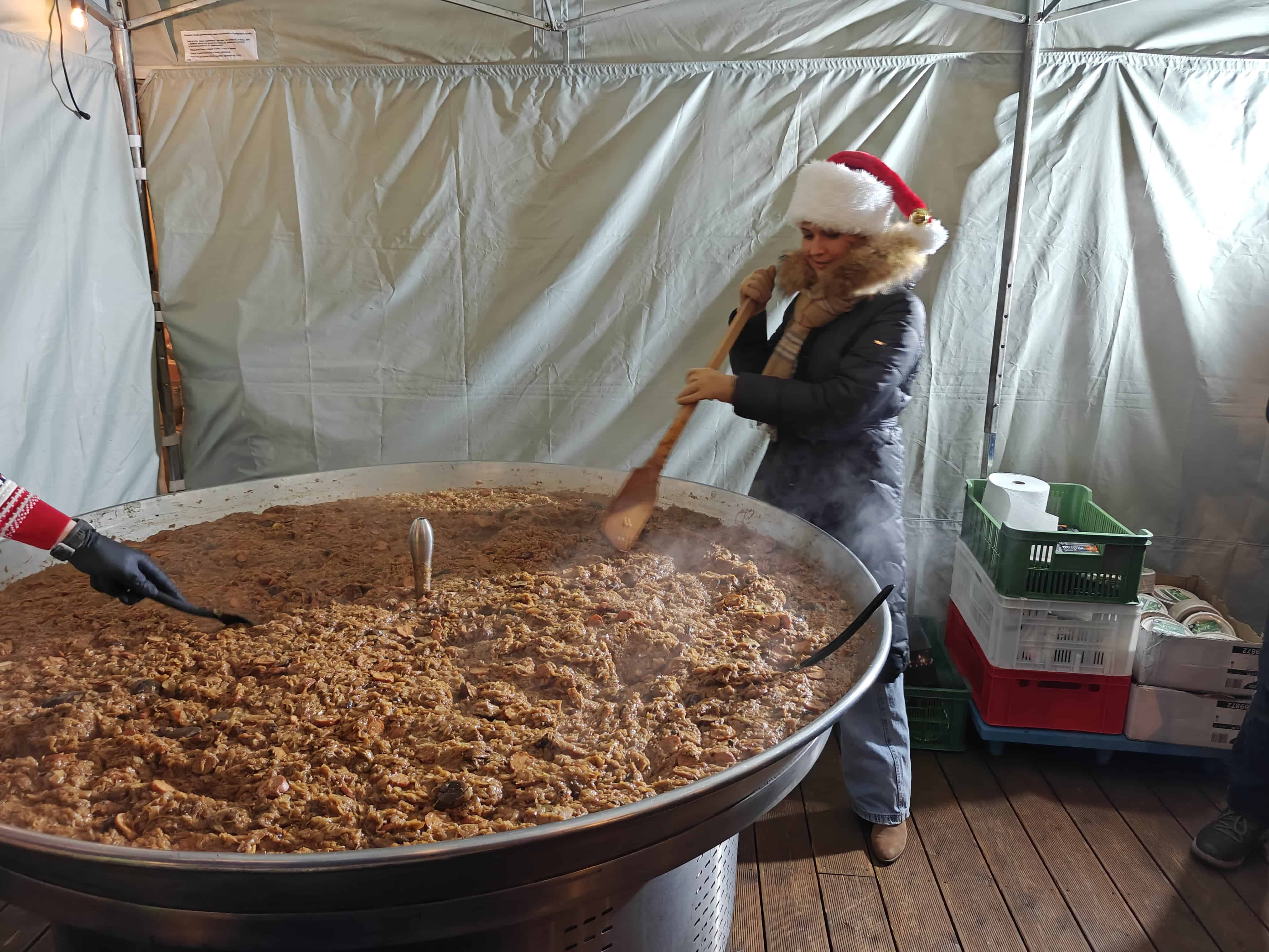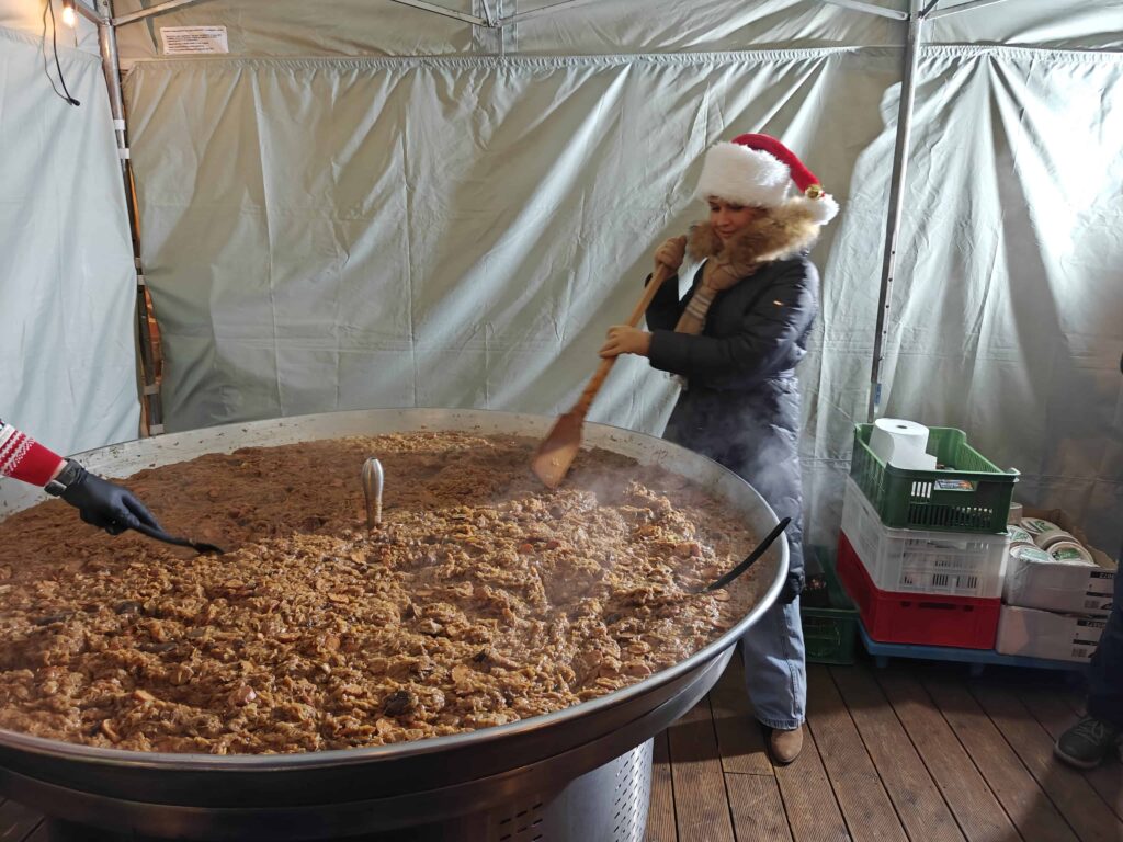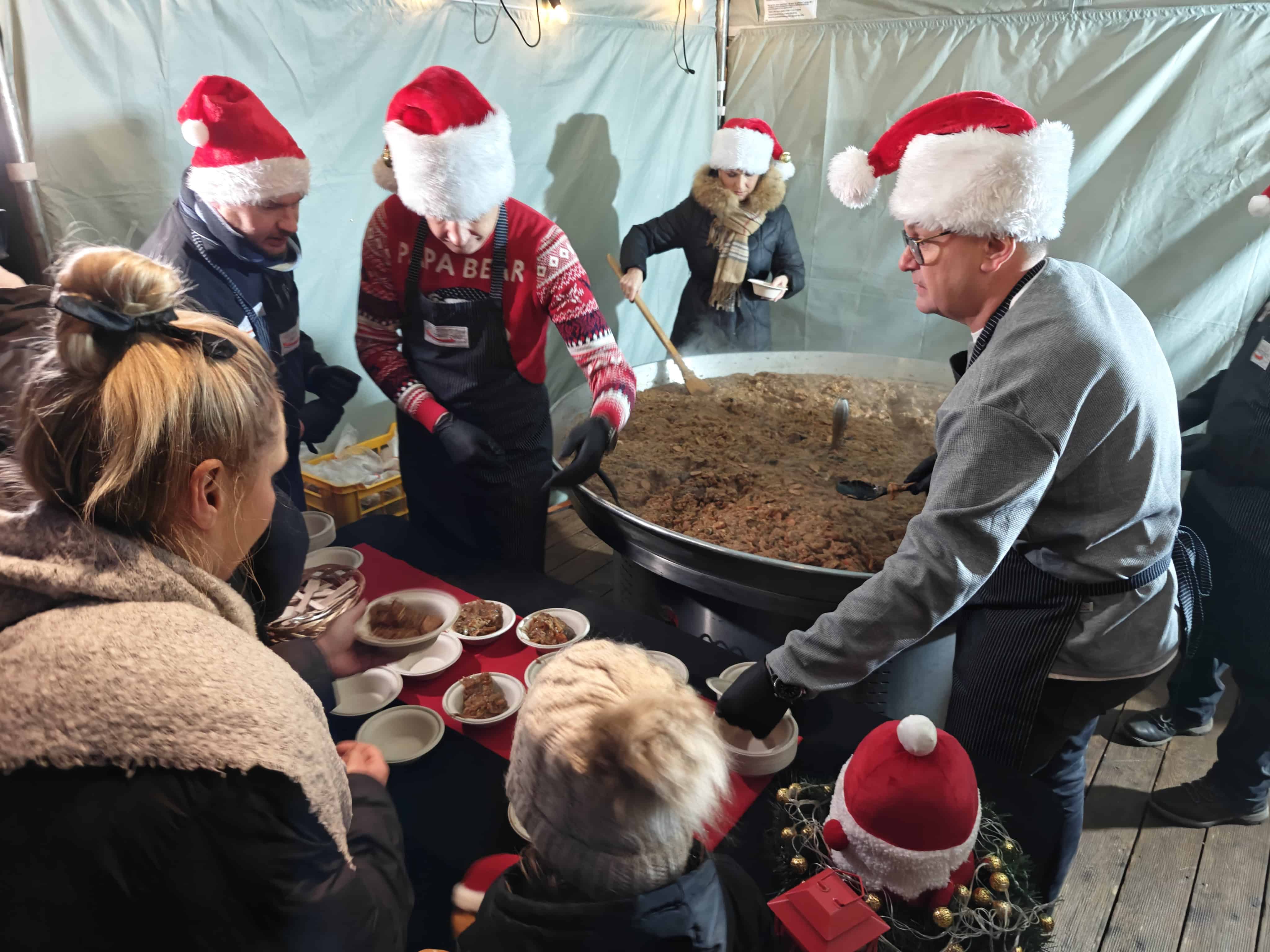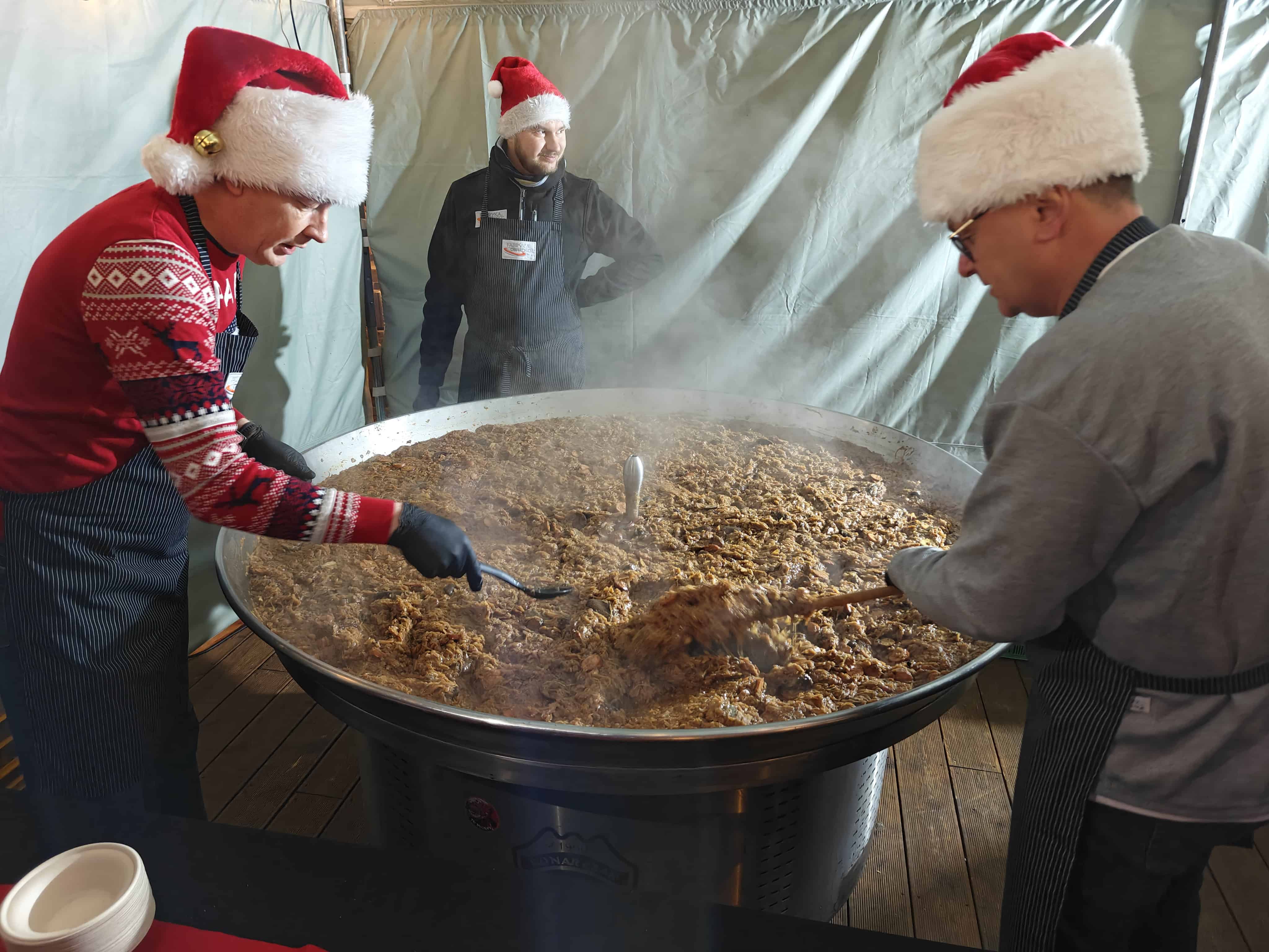 Tłoczno przed CTK zaczynało się robić już wczesnym popołudniem. Zaczynało się przyrządzanie bigosu na wielkiej patelni, czynne już były stoiska serwujące potrawy i napoje, a w sali widowiskowej trwały już występy. Potem było tylko ciekawiej. Chcąc spotkać się ze Świętym Mikołajem, dzieci i ich opiekunowie czekali w długiej kolejce żałując, że nie ma on brata bliźniaka. Obok formowała się kolejka po bigos, który serwowali wójt Tomasz Stellmaszyk i przewodniczący Rady Gminy Marek Kubiak, wspomagani przez samorządowych współpracowników. Nałożyli ponad tysiąc porcji, a szło im to tak sprawnie, że kolejka znikła już po kilku minutach, a pyszny bigos wciąż czekał na chętnych.