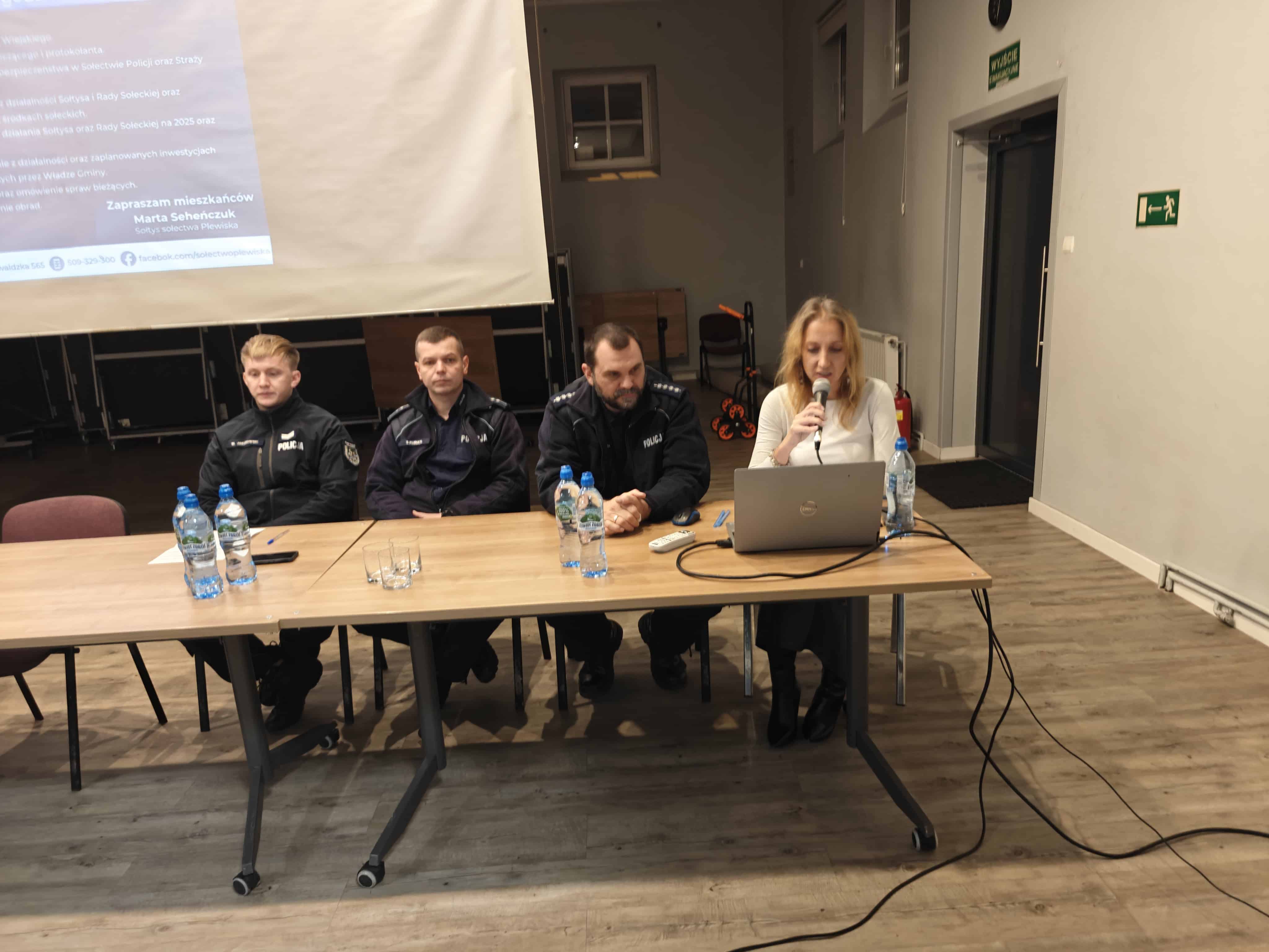 Pierwszym tematem zebrania było bezpieczeństwo mieszkańców – by nie zmuszać funkcjonariuszy policji z komornickiego komisariatu i strażników gminnych z panią komendant Sylwią Lokke do długiego uczestnictwa w posiedzeniu. Z przedstawionych statystyk wynikało, że policjanci podjęli w Plewiskach, od początku roku, 811 czynności. W 55 przypadkach dotyczyło to zagrożeń życia lub zdrowia, 165 razy wystąpiły zdarzenia kryminalne, 77 razy funkcjonariusze wzywani byli do kolizji drogowych lub wypadków. Zdarzyły się 3 pobicia, 96 kradzieży, w tym 8 pojazdów.