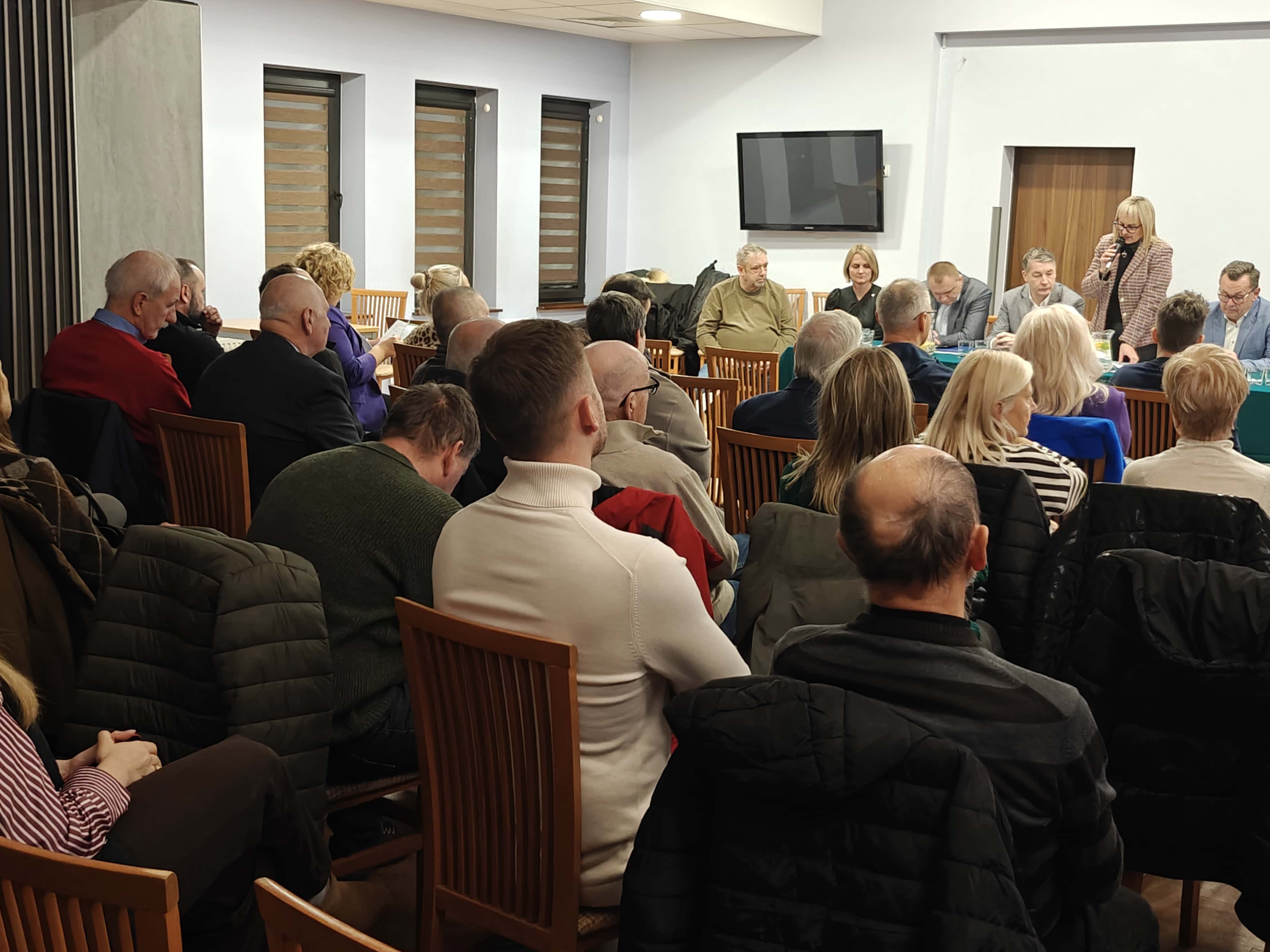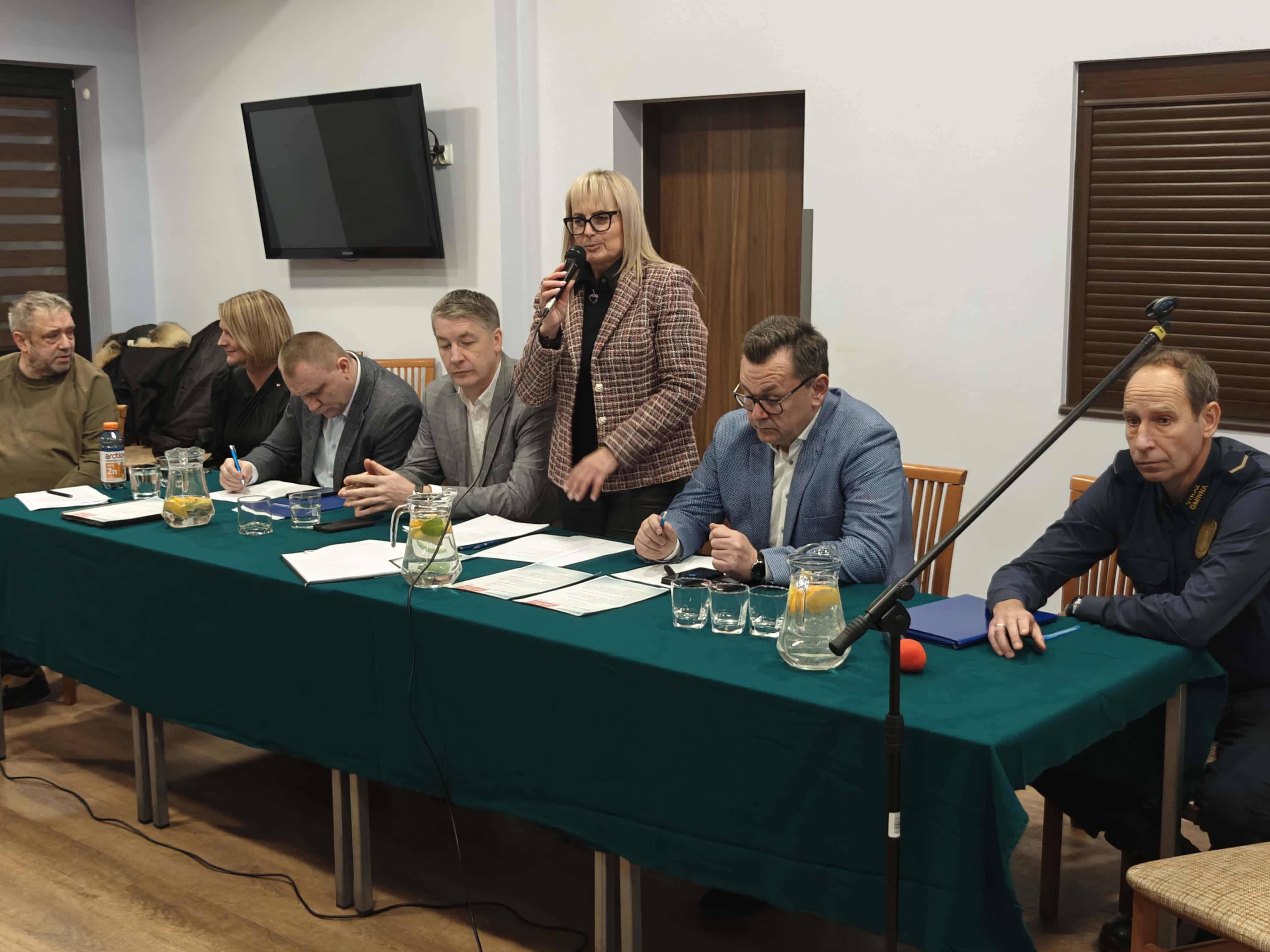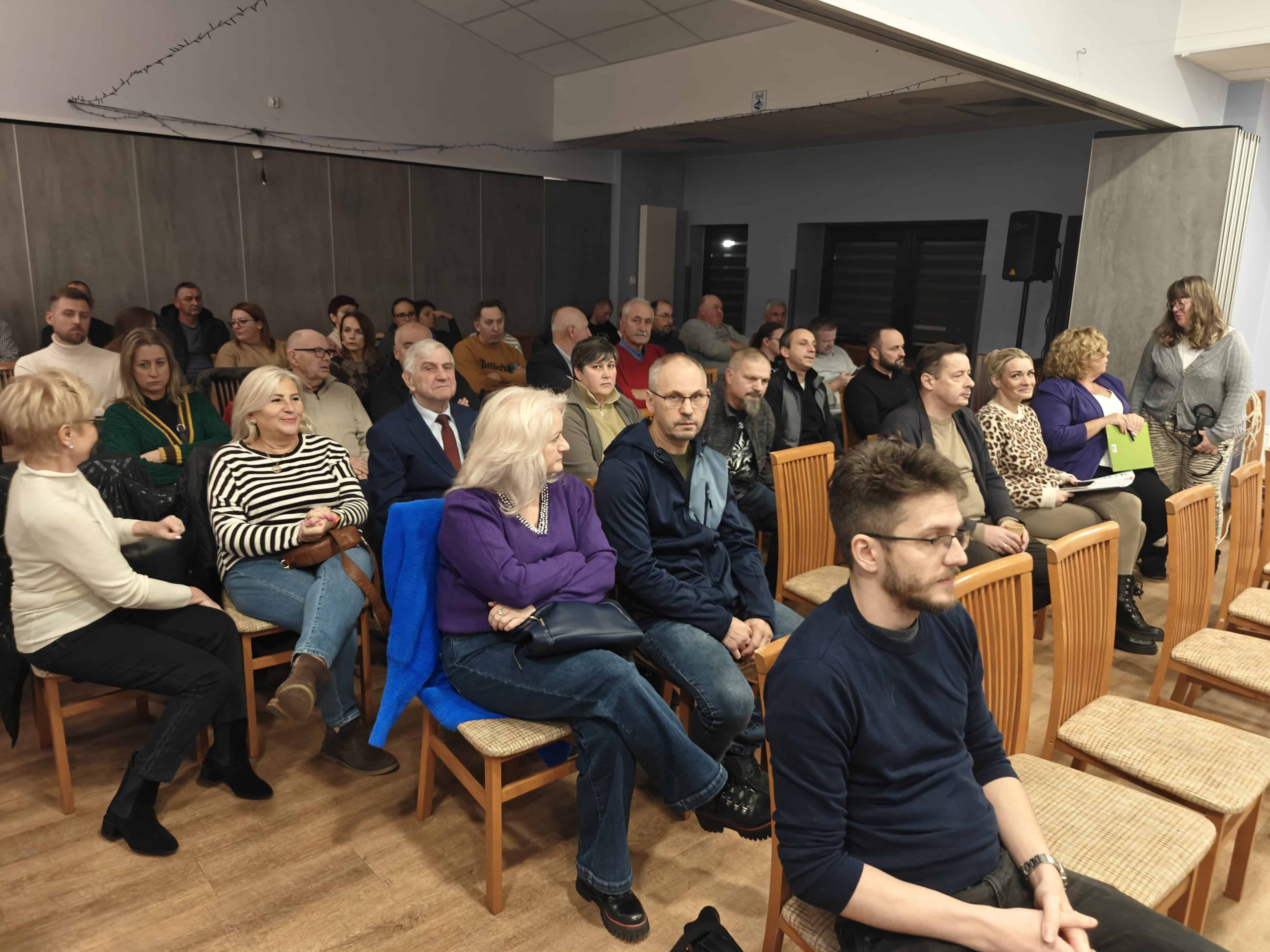 Sołtys Dorota Trocha przywitała wójta Tomasza Stellmaszyka, jego zastępcę Przemysława Pełko, przewodniczącego Rady Gminy Marka Kubiaka, przedstawicieli Przedsiębiorstwa Usług Komunalnych z prezes Agatą Ożegowską-Kołowską, funkcjonariusza Straży Gminnej. Wśród mieszkańców znajdowali się gminni radni. Był i przedstawiciel firmy instalującej sieć światłowodową. Ponieważ usługodawca przeszedł zmiany organizacyjne, w kuluarach można było uzyskać najważniejsze informacje z pierwszej ręki, poznać plany firmy.