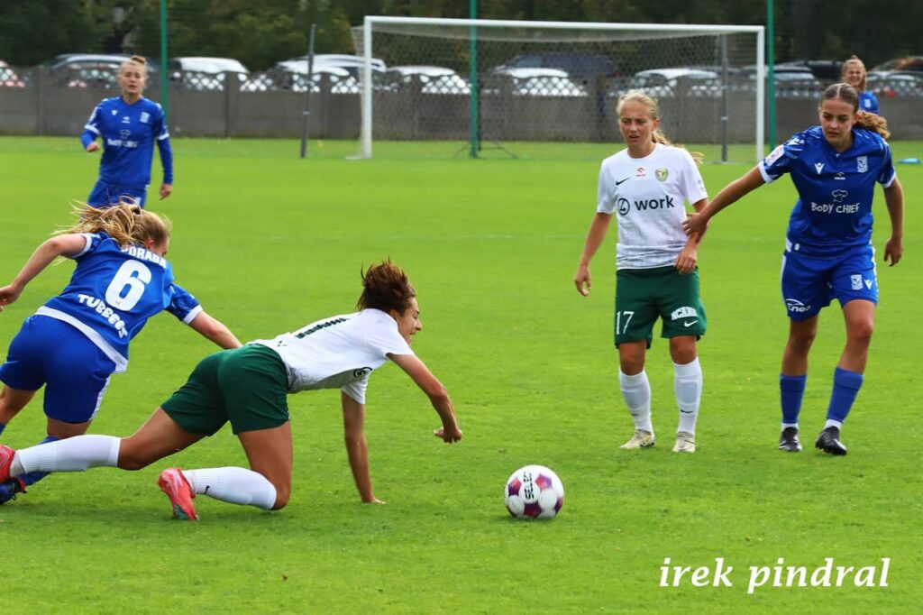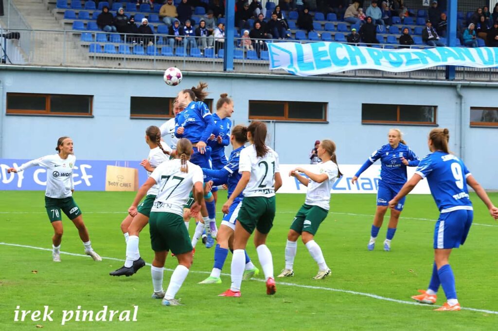 Mimo brzydkiej pogody, przenikliwego wiatru sporo widzów zasiadło na trybunie stadionu GOSiR w Plewiskach. Piłkarki Lecha Pozna n UAM w ramach rozgrywek Orlen Ekstraligi mierzyły się tam z dużo bardziej doświadczonym Śląskiem Wrocław. Przegrały ten mecz zdecydowanie, aż 0:3, choć z przebiegu gry wynik był zbyt wysoki.