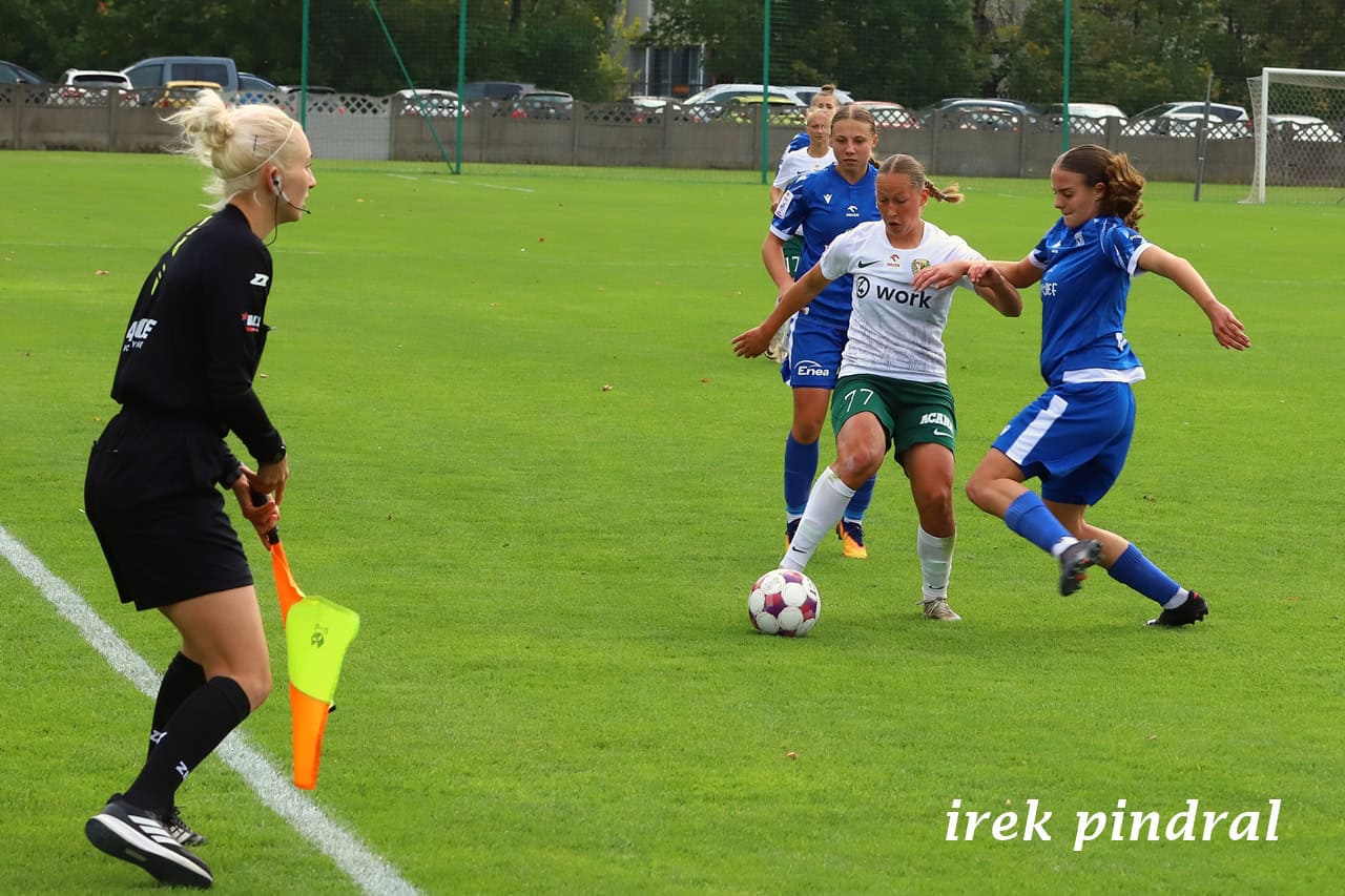Mimo brzydkiej pogody, przenikliwego wiatru sporo widzów zasiadło na trybunie stadionu GOSiR w Plewiskach. Piłkarki Lecha Pozna n UAM w ramach rozgrywek Orlen Ekstraligi mierzyły się tam z dużo bardziej doświadczonym Śląskiem Wrocław. Przegrały ten mecz zdecydowanie, aż 0:3, choć z przebiegu gry wynik był zbyt wysoki.