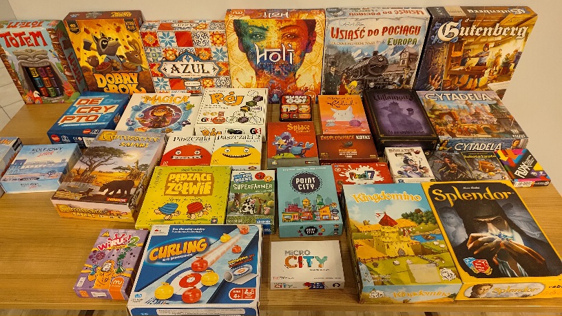 Jest tutaj wiele gier. Przyglądamy się temu ile razy ktoś po daną grę sięgnął. Jeśli ktoś w nią w ogóle gra, na przykład w „Śpiące królewny”. Chyba po nie nikt nie sięgnął przez ostatni miesiąc, więc może je zabierzemy, przyniesiemy coś nowego, ciekawego. Kwestia jest tylko taka, że te gry potrafią trochę ważyć więc nie chcemy ich nosić co tydzień. Chcemy tutaj zbudować taką bazę, żeby było w co pograć, było zróżnicowanie, a za razem żeby samemu nie uszkodzić sobie pleców.