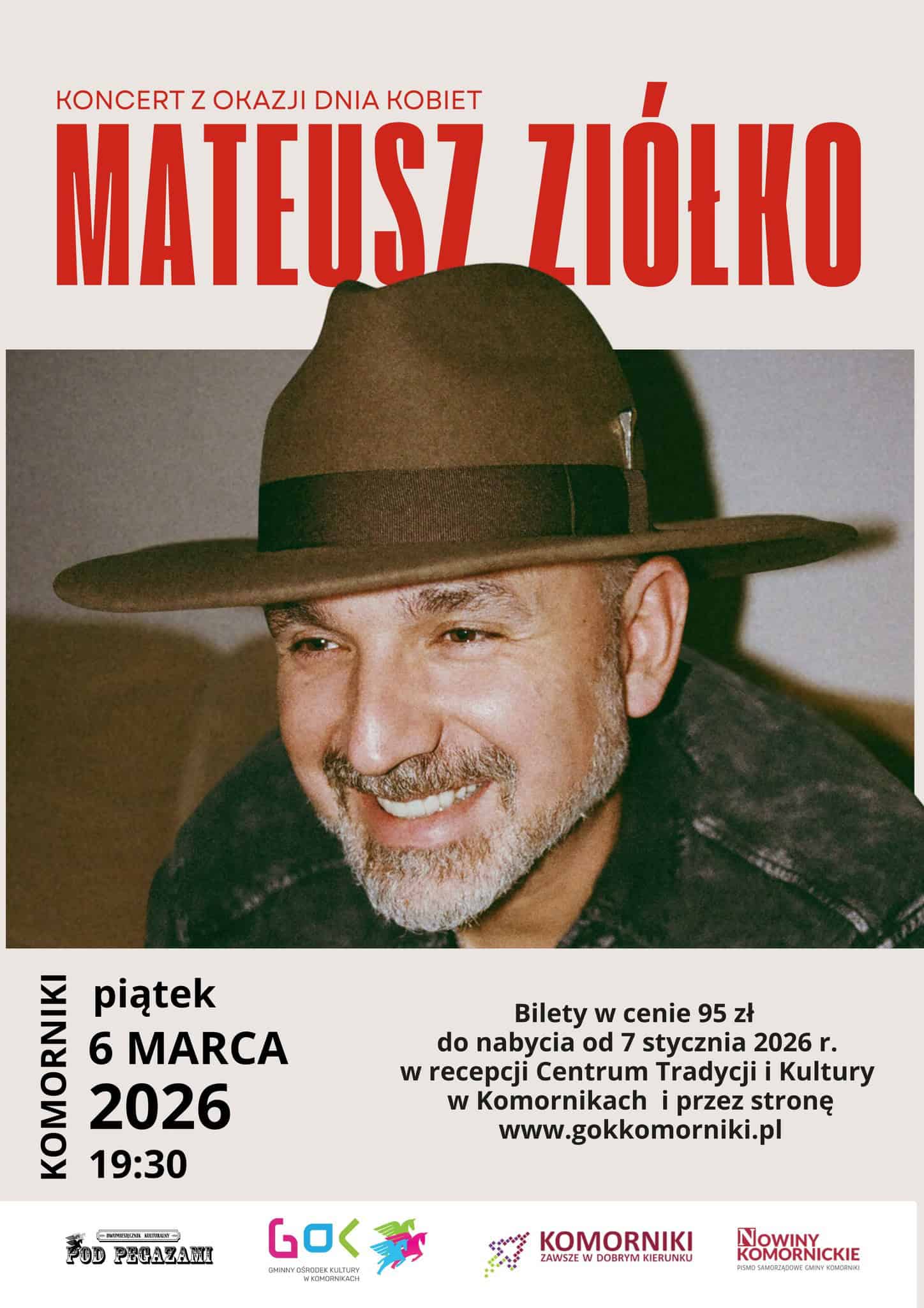 Już w najbliższy piątek w CTiK w Komornikach odbędzie się koncert z okazji Dnia Kobiet, podczas którego wystąpi Mateusz Ziółko. Artysta, znany m.in. z takich hitów jak ,,W płomieniach” oraz ,,7 rzeczy”, zagości w Komornikach, by uświetnić to wyjątkowe święto.