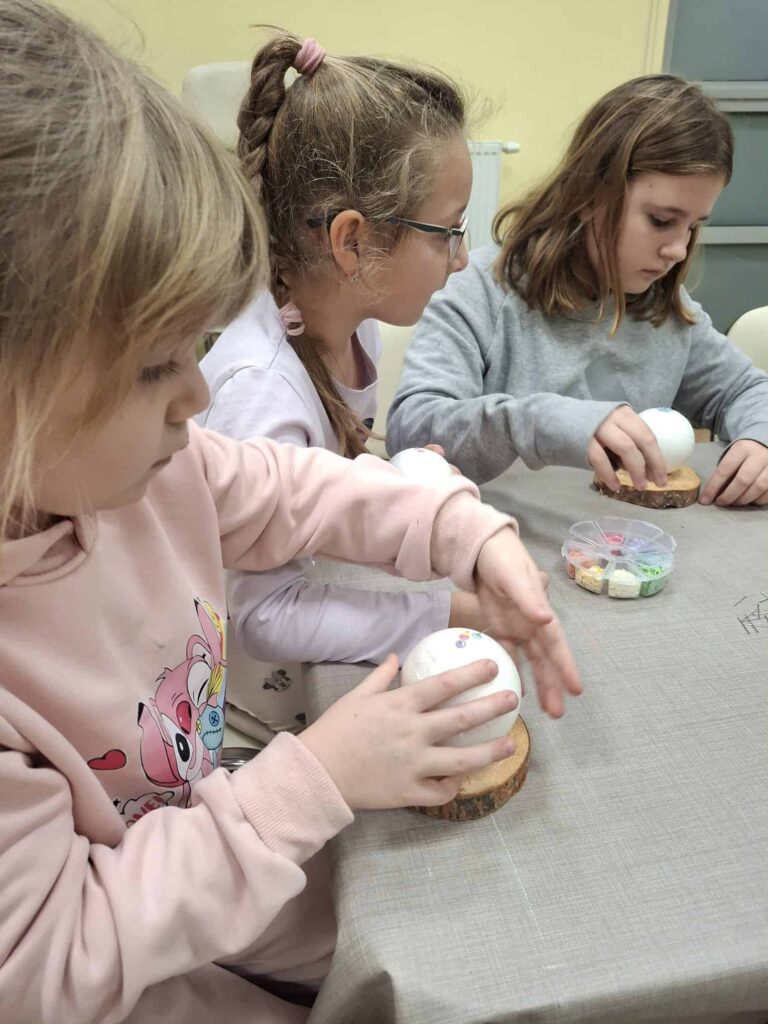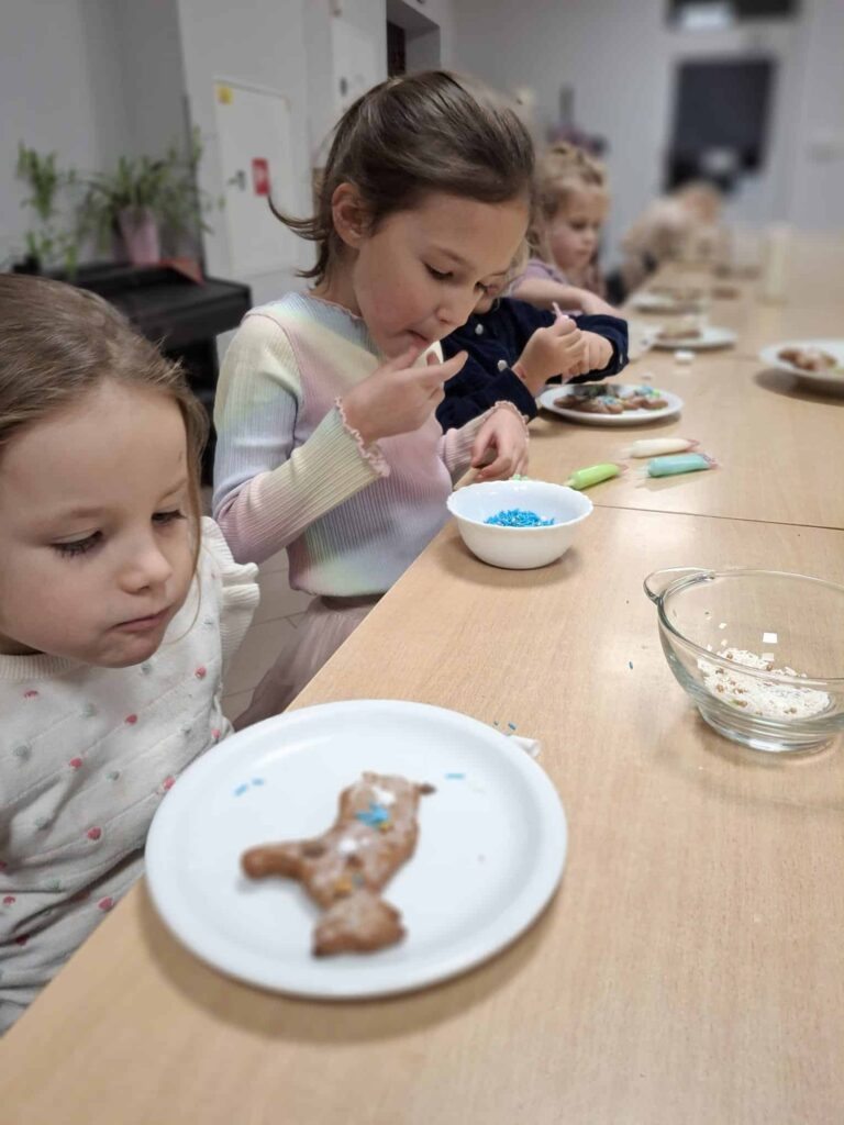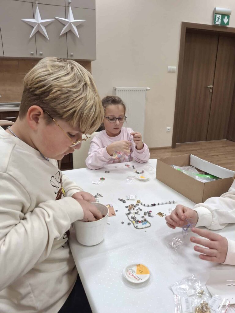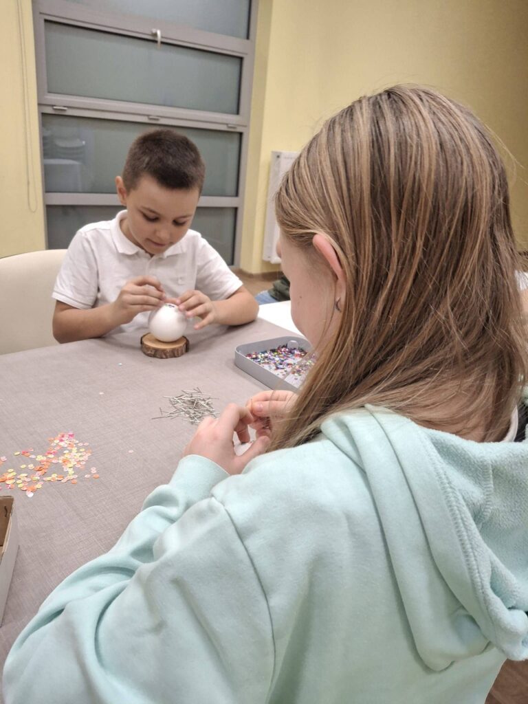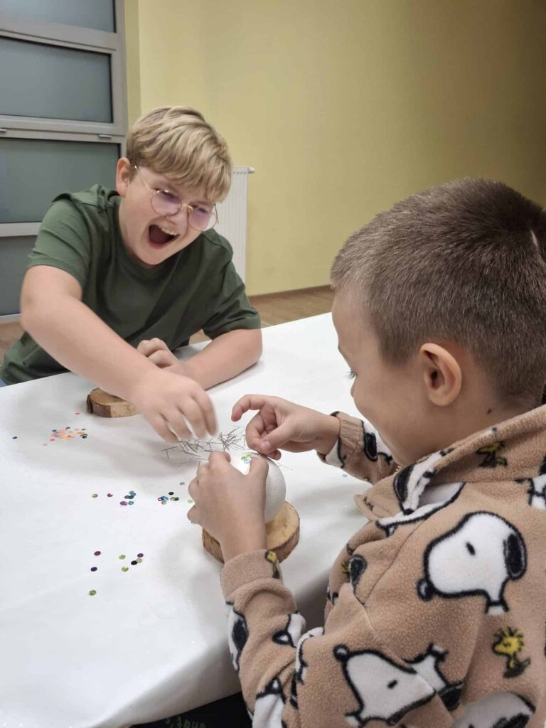 Wspólnie spędzony czas wypełniały także kreatywne zajęcia – dzieci z zaangażowaniem wykonywały rozmaite ozdoby świąteczne, takie jak stroiki, bombki, kartki bożonarodzeniowe czy papierowe łańcuchy. Prace te nie tylko wprowadziły wszystkich w świąteczny nastrój, ale pozwoliły rozwijać wyobraźnię, zdolności manualne oraz współpracę w grupie. W świetlicach zapanowała ciepła, magiczna atmosfera, a przygotowania do świąt stały się okazją do integracji i wspólnego przeżywania wyjątkowego czasu.