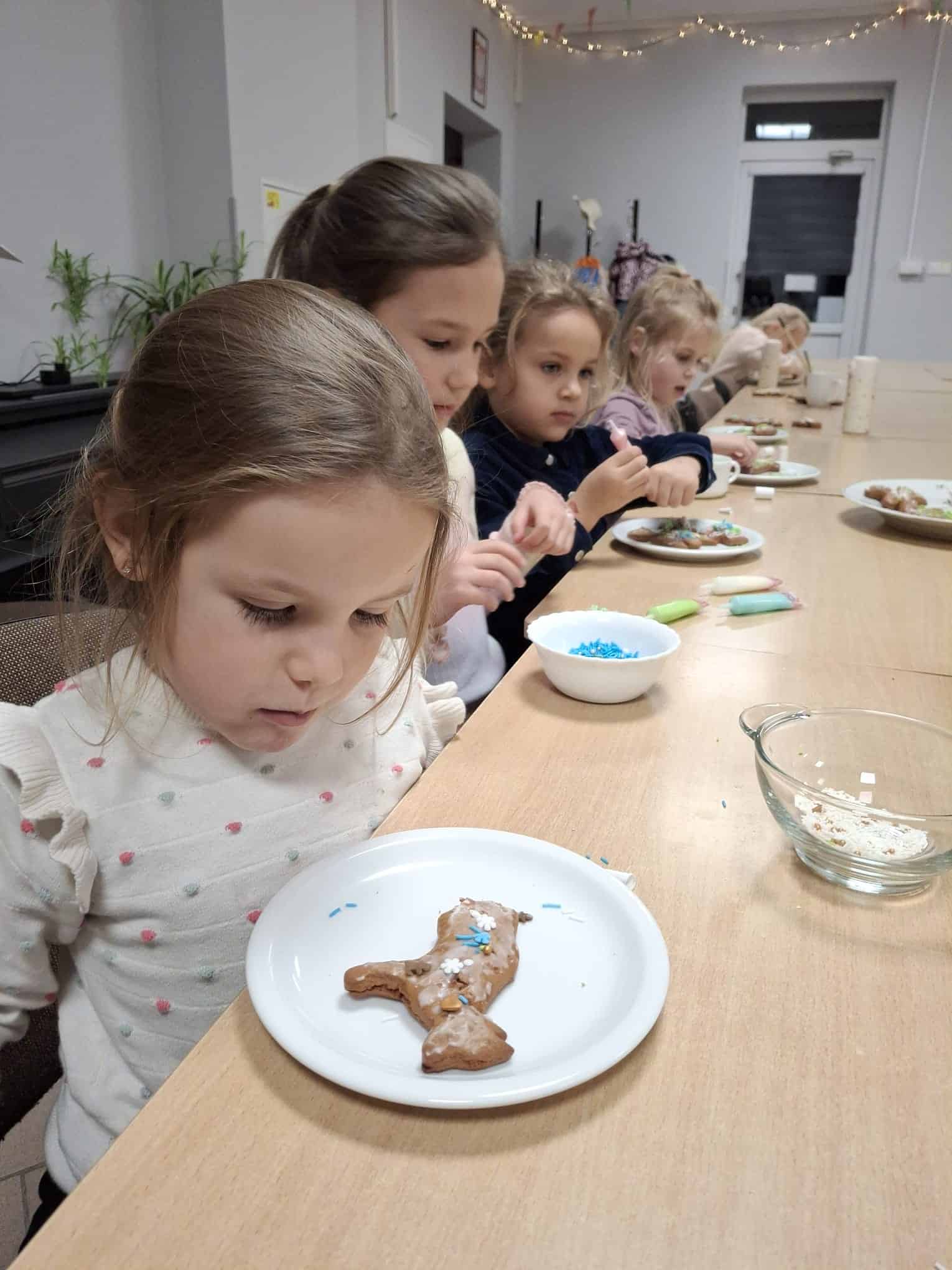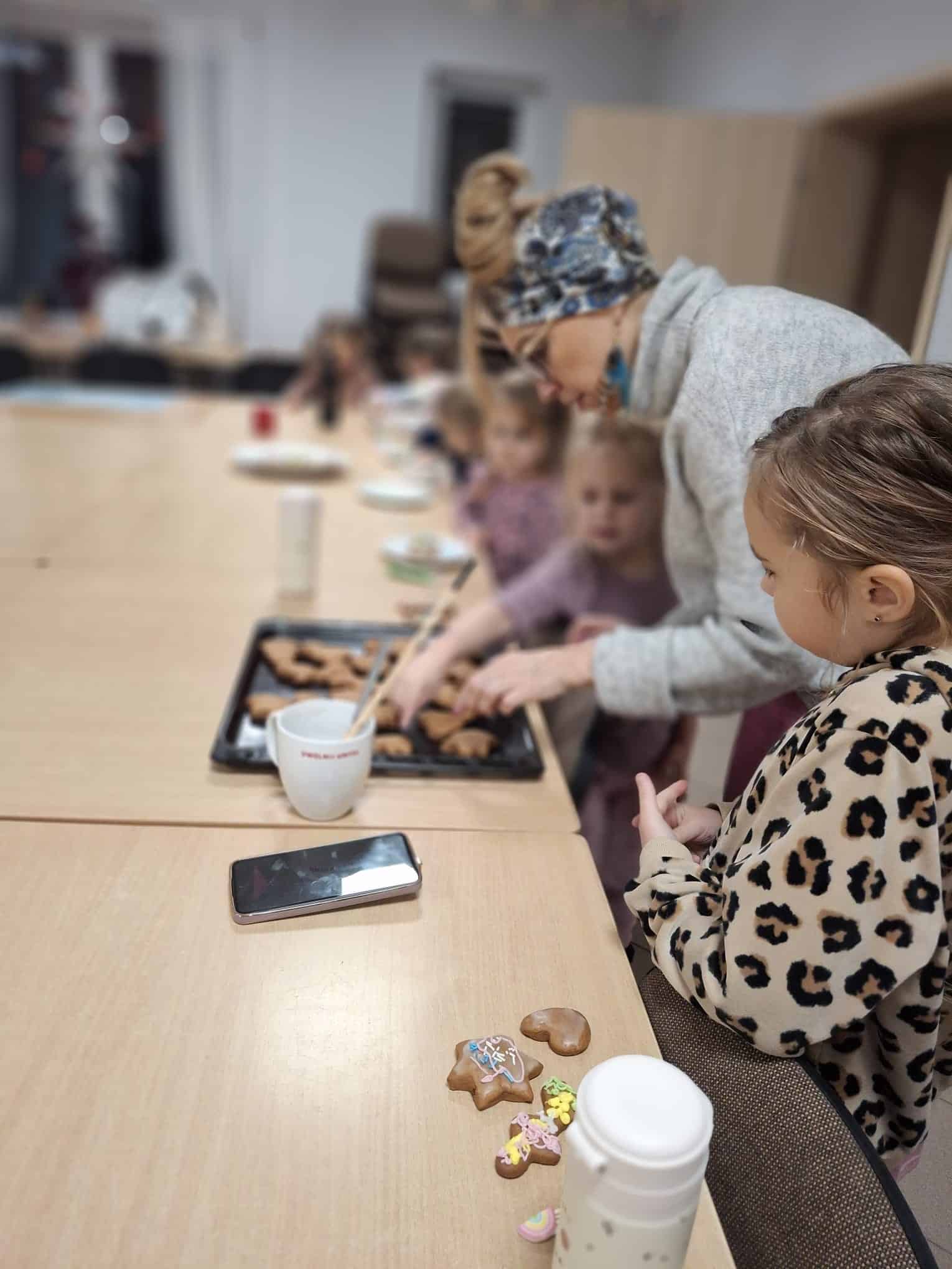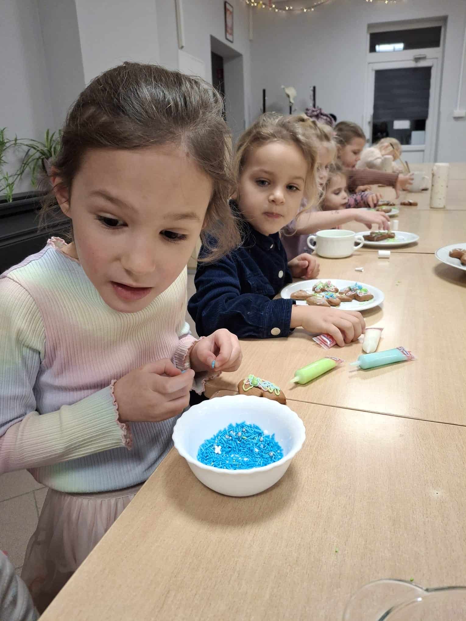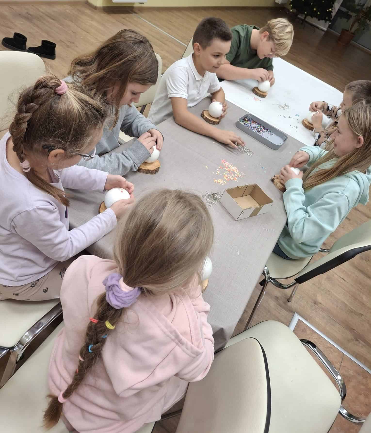 Wspólnie spędzony czas wypełniały także kreatywne zajęcia – dzieci z zaangażowaniem wykonywały rozmaite ozdoby świąteczne, takie jak stroiki, bombki, kartki bożonarodzeniowe czy papierowe łańcuchy. Prace te nie tylko wprowadziły wszystkich w świąteczny nastrój, ale pozwoliły rozwijać wyobraźnię, zdolności manualne oraz współpracę w grupie. W świetlicach zapanowała ciepła, magiczna atmosfera, a przygotowania do świąt stały się okazją do integracji i wspólnego przeżywania wyjątkowego czasu.