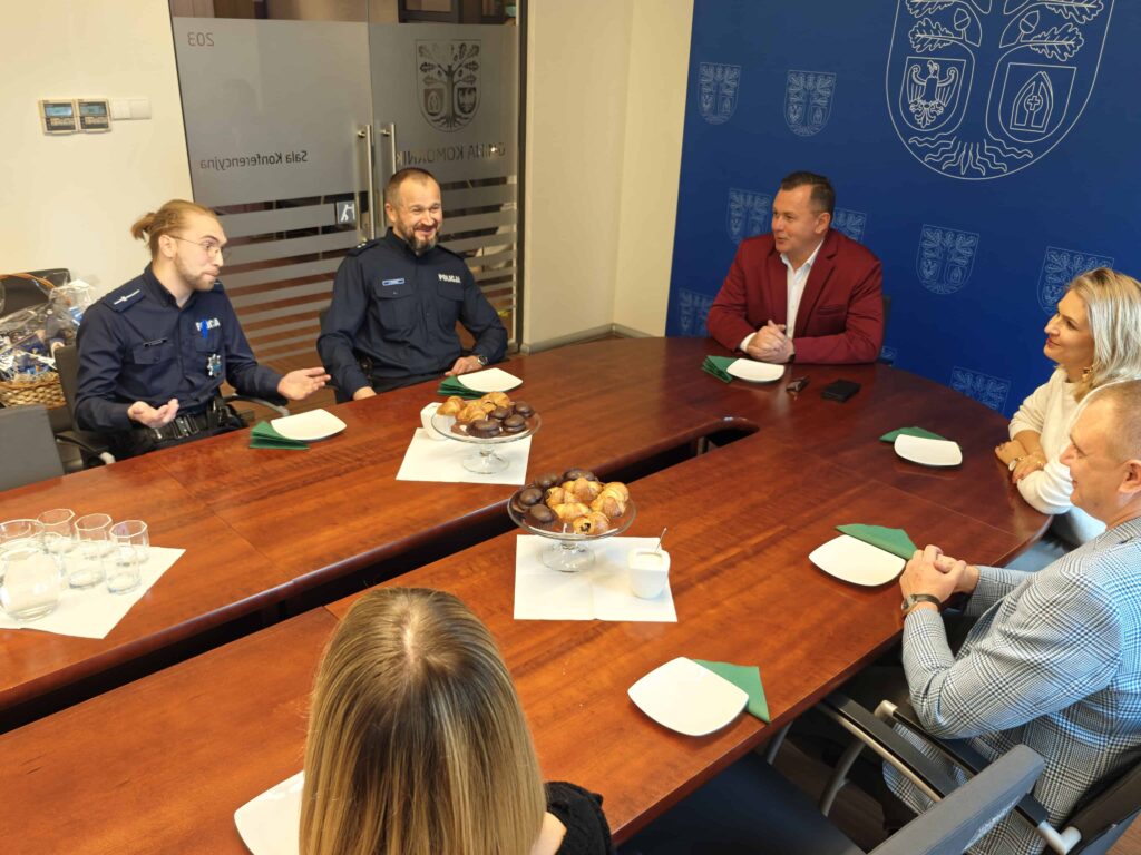 W spotkaniu uczestniczyli zastępcy wójta Katarzyna Trzeciak i Przemysław Pełko oraz sekretarz gminy Olga Karłowska. Mieli oni do najlepszego dzielnicowego i do komendanta wiele pytań na temat charakteru jego służby, problemów, z jakimi się spotyka. Mowa była o sprawach związanych z bezpieczeństwem, o sytuacji kadrowej w policji, o wspieraniu tej formacji przez samorząd, planowanej budowie nowego komisariatu. Komornicki policjant, który został bohaterem mediów, przyczynił się do promocji gminy. Komendant Lucjan Piwosz podkreślił, że to największy sukces w historii tutejszego komisariatu.