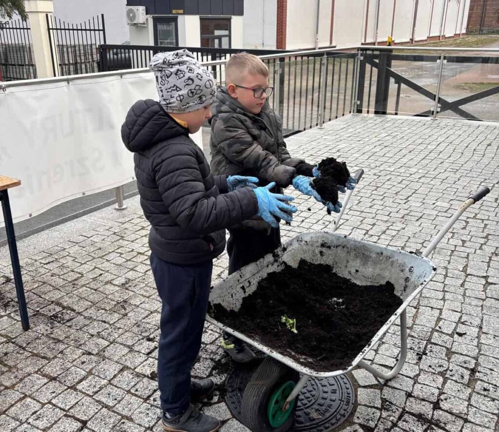 Wspólne sadzenie bratków przy świetlicy środowiskowej w Szreniawie było nie tylko okazją do kontaktu z naturą, ale także do budowania relacji i rozwijania współpracy wśród uczestników. Dzieci z zaangażowaniem przygotowywały doniczki, sadziły kolorowe kwiaty i dbały o porządek wokół siebie, ucząc się przy tym odpowiedzialności oraz troski o środowisko.