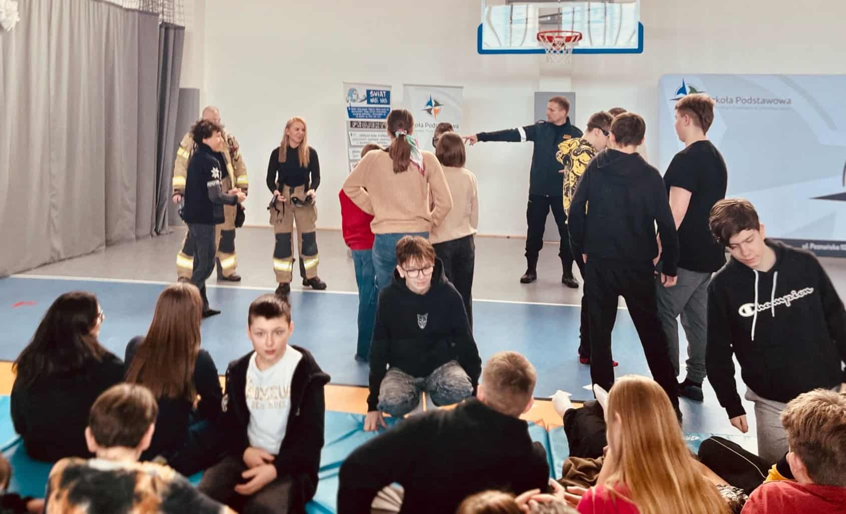 Młodzi ludzie dowiedzieli się, jak udziela się pierwszej pomocy, korzystając z fantoma przywiezionego przez strażaków, służącego do reanimacji, prowadzenia resuscytacji. Każdy człowiek może zetknąć się z sytuacją, gdy od szybkości udzielenia pomocy może zależeć ludzkie życie.