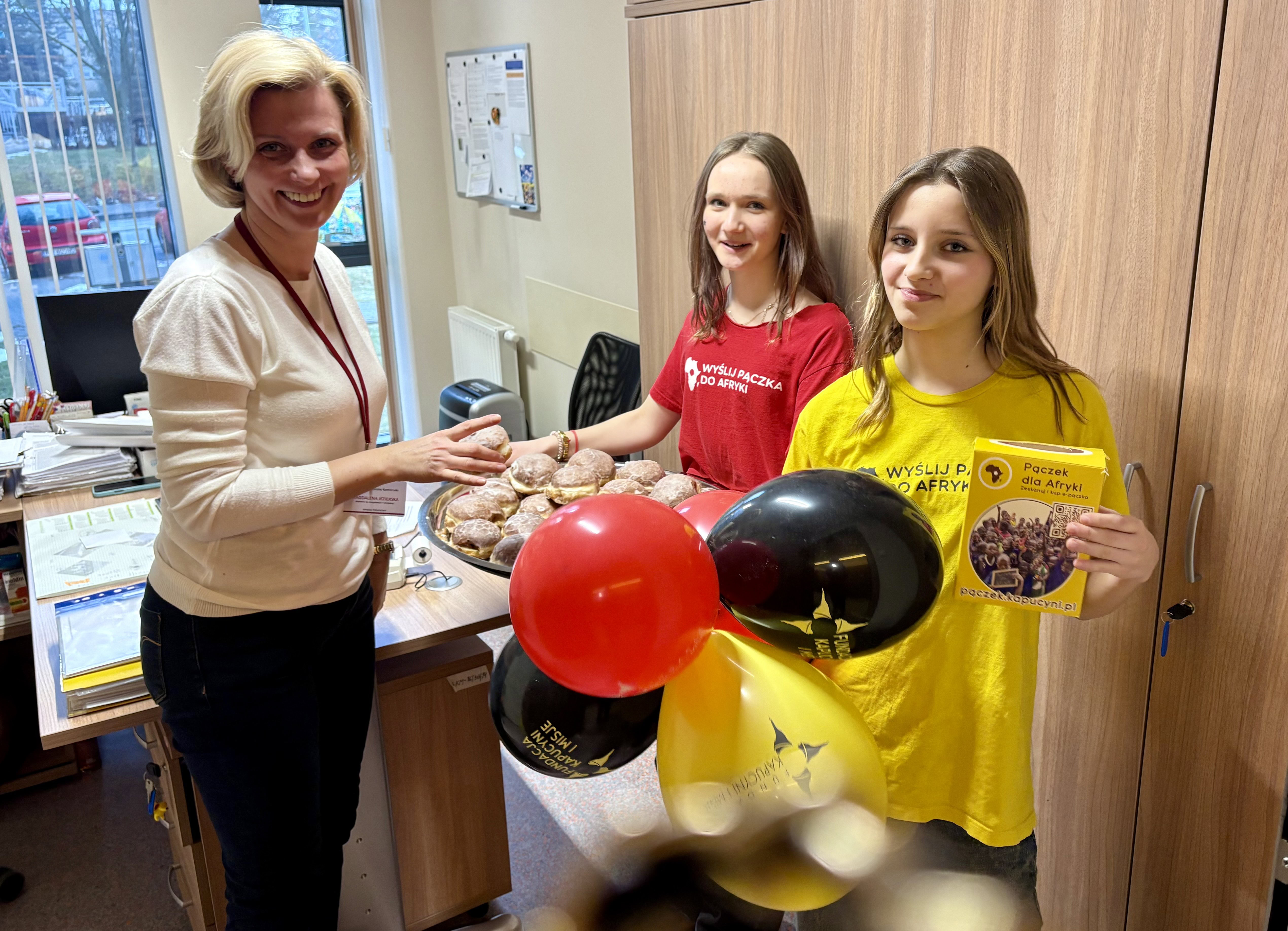 Już od rana w szkole unosił się zapach świeżych pączków, a stoisko przygotowane przez wolontariuszy cieszyło się ogromnym zainteresowaniem. Uczniowie, nauczyciele oraz pracownicy szkoły chętnie włączali się w akcję, pokazując, że pomaganie może mieć nie tylko wielkie serce, ale i słodki smak.