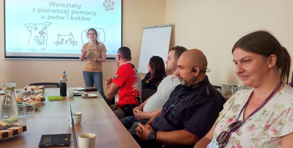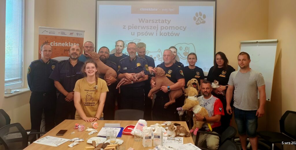 Nie tylko ludziom trzeba w nagłych sytuacjach udzielać pierwszej pomocy, także zwierzętom. Straż Gminna w Komornikach nawiązała kontakt z Fundacją Rozwoju Edukacji i Turystyki RYSY. Funkcjonariusze, w ramach projektu #cisneklate-podaj łapę mogli uczestniczyć w bezpłatnym szkoleniu z udzielania pierwszej pomocy przedweterynaryjnej psom i kotom.