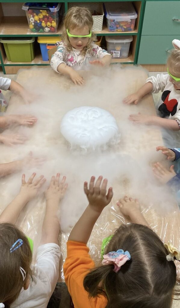 Przygotowując się do projektu przewidziałam poszerzenie oferty przedszkola o zajęcia edukacyjne o charakterze badawczym. Od października w przedszkolu odbywają się cykliczne zajęcia: „Laboratorium Młodego Badacza”, które oferuje Pracownia Edukacyjna „Wiatrak”. Jest to cykl warsztatów z pogranicza szeroko rozumianej przyrody tj. eksperymenty fizyko-chemiczne i przyrodnicze, a także ekologia. Dzieci mają możliwość wykonywać interesujące eksperymenty, które niejednokrotnie wywołują zdumienie i oczarowanie światem chemii i fizyki. Wszystkie eksperymenty i doświadczenia dzieci przeprowadzają przy wykorzystaniu produktów spożywczych i wyłącznie pod okiem instruktora. Inspiracją dla zabaw, eksperymentów i doświadczeń, w których dzieci biorą udział jest natura. Mali przyrodnicy za pomocą „szkiełka i oka” odkrywają fascynujący świat roślin i zwierząt, dzięki czemu lepiej rozumieć powiązania pomiędzy człowiekiem i naturą. Warsztaty, które ujęłam w projekcie mają na celu: