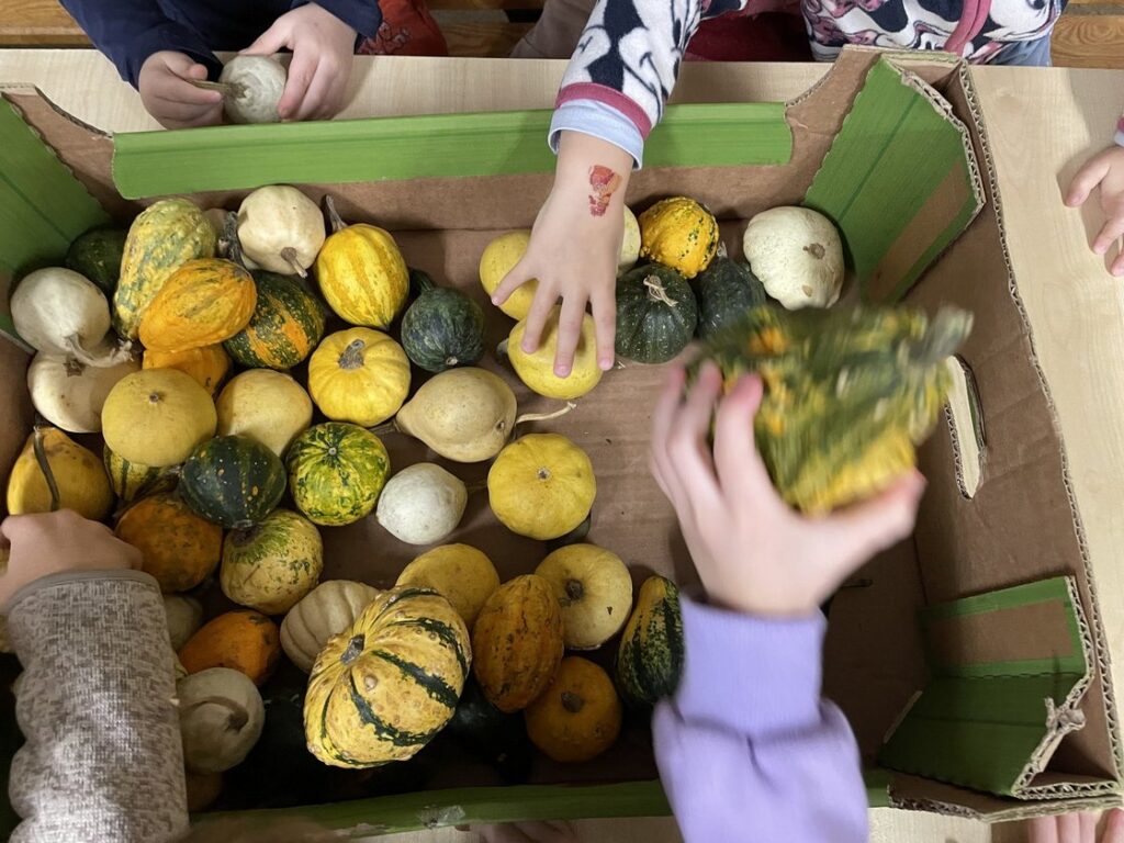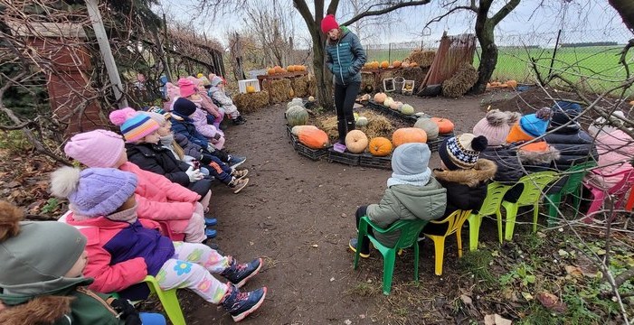 Mając na uwadze rozwój świadomości ekologicznej naszych dzieci, a także wspieranie lokalnych firm ujęłam w projekcie cykliczne (2 razy w roku) wycieczki związane ze zmianami pór roku do Ogrodu Ekologicznego Gładysiaków w Wirach. Ogród posiada certyfikat gospodarstwa ekologicznego nadawany przez AgroBioTest tj. instytucję certyfikującą uprawnioną przez Ministerstwo Rolnictwa i Rozwoju Wsi, do nadawania certyfikatów rolnictwa ekologicznego. Dzieci maja okazję utrwalać wiedzę dotyczącą mieszkających w ogrodzie zwierząt, hodowanych roślin, zasady ekologii, ochrony środowiska czy zdrowego żywienia. Jesienią nasi przedszkolacy brały udział w warsztatach: „Korbol, czyli dynia-królowa jesieni”. Zajęcia pozwoliły dzieciom poznać jak bogata jest dyniowa rodzina (cukinie, arbuzy i dalsze kuzynostwo), a także jej wartości odżywcze i możliwości wykorzystania w kuchni.
